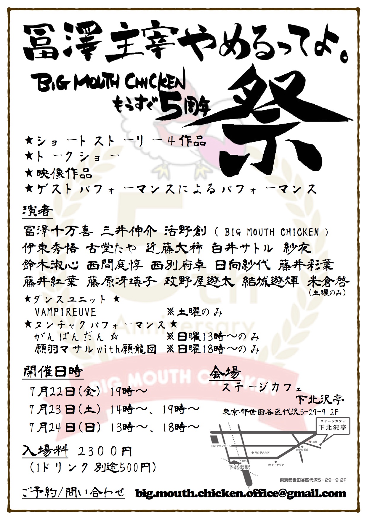 | アクセス | ステージカフェ下北沢亭 住所:東京都世田谷区代沢5-29-9 2F |
